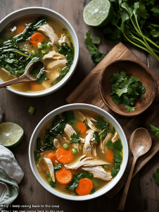 9. Once ready, ladle the hot soup into bowls, making sure each serving has tender chicken and a bright, citrusy broth.