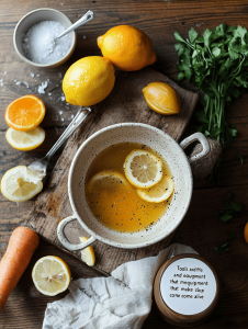 8. Taste the broth and adjust seasoning with salt and pepper as needed, ensuring the lemon flavor is fresh and vibrant.
