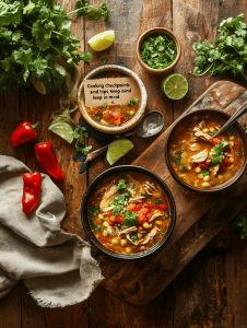 This spicy chicken soup combines tender diced chicken with aromatic onions, garlic, and a blend of smoky spices, simmered in savory broth for a comforting, bold-flavored dish. The final result is a warming, slightly oily soup with a vibrant aroma and a balanced heat that soothes and satisfies. Brightened with lemon juice and fresh herbs, it’s perfect for quick comfort on a chilly night.