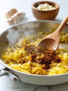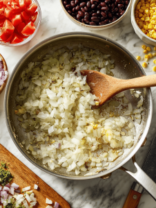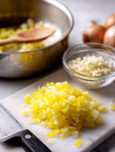 • Onions and celery: Build the aromatic foundation; smell should be sweet and savory.