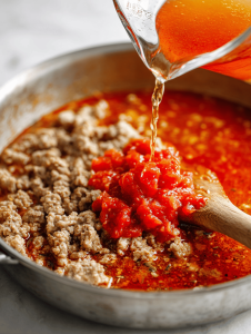 Step 4: Add cooked rice, ground meat (or beans for a vegetarian version), chopped tomatoes, and spices. Cook until everything is heated through, about 5 minutes.