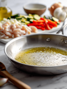 - Heat the oil over medium heat until it shimmers and begins to ripple, about 2 minutes. Add diced onions, bell peppers, and celery if using; sauté until fragrant and slightly softened, around 5 minutes, until they turn translucent and the mixture smells sweet.