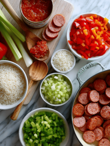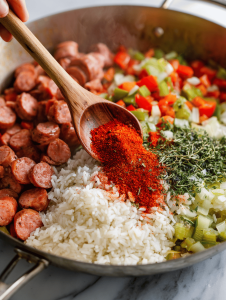 - Smoked sausage: I love the punch it adds, but turkey sausage works in a pinch if you want less fat.: Gives a smoky, savory backbone to the dish, with a juicy bite and crispy edges.
