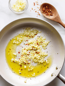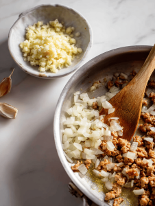 - Stir in the minced garlic and crushed tomatoes; cook for another 2 minutes, allowing the mixture to darken slightly and smell rich and savory.