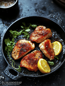 It’s reliable, quick, and forgiving. The crispy skin and tender meat remind me that simple ingredients can shine with just the right touch. Plus, it’s endlessly adaptable—change up the seasonings, serve over greens or grains, and it still feels fresh. No matter what’s going on, this chicken feels like home.