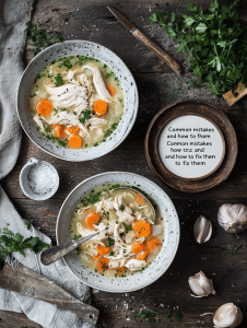 - Overcooked and dried out.? Add a splash of broth or water and cover the pan if chicken looks dry.